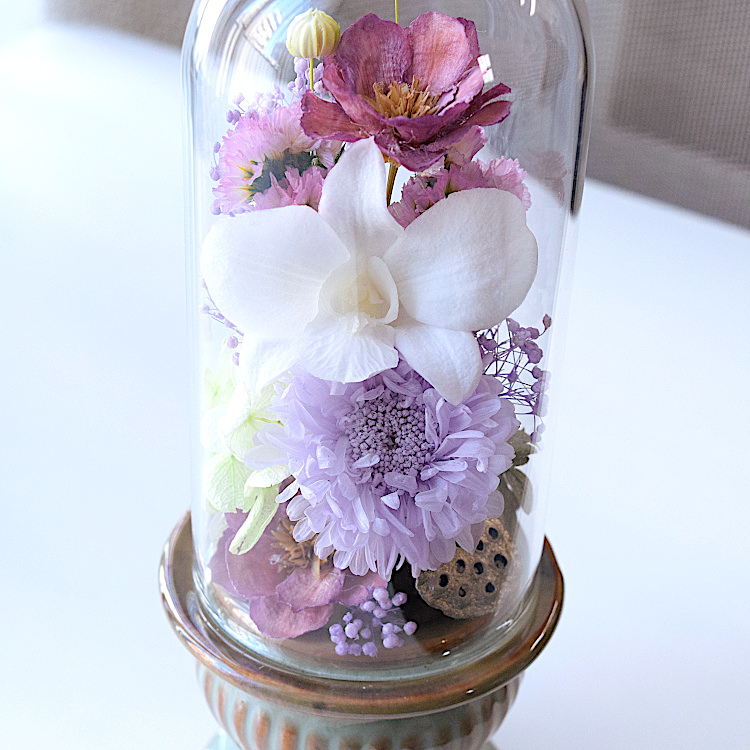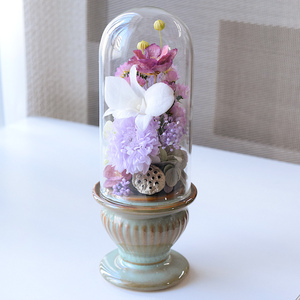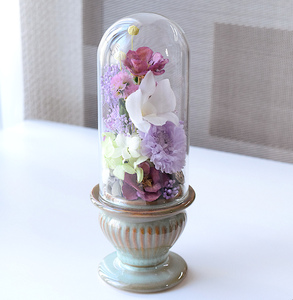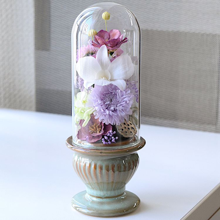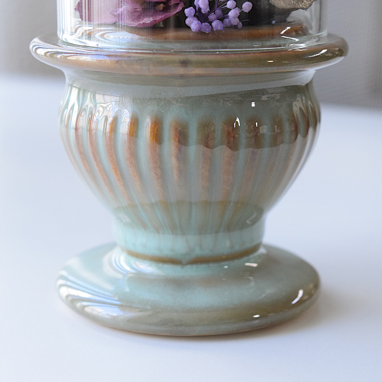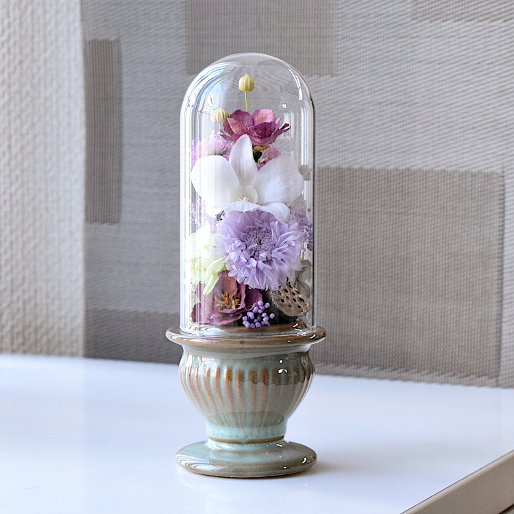 青磁色の花器は艶のある陶器製、ドームはガラス製です |