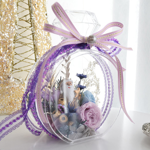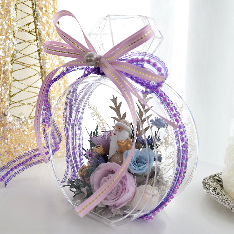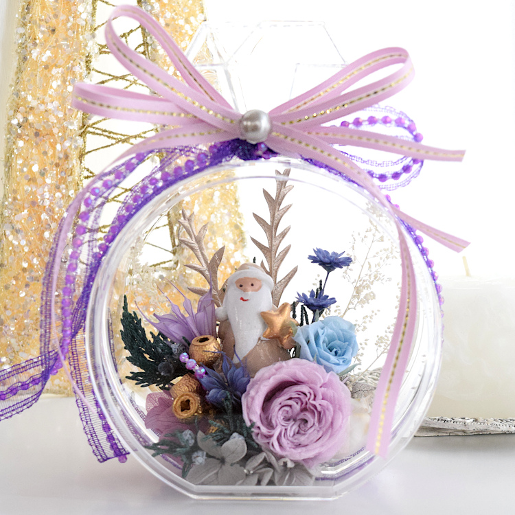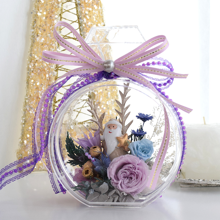 硬プラスチックのフレグランスボトルにサンタさんをあしらったアレンジメントです。
