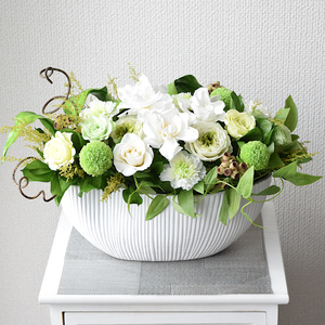 贅沢にお花を使った、ホワイトグリーンのインテリアアレンジです。…